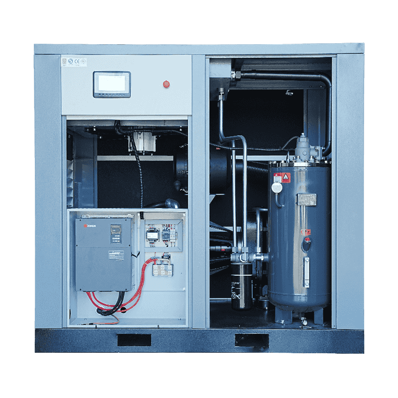Efektywność energetyczna nie zależy wyłącznie od technologii smarowania; konstrukcja konstrukcyjna również odgrywa ważną rolę w wydajności sprężarki o mocy 75 KM. Geometria wirnika, wyrównanie kanałów powietrza i sztywność ramy są optymalizowane poprzez modelowanie CAE, aby zminimalizować niepotrzebne zużycie energii. Zapewniając płynną cyrkulację przepływu powietrza i redukując spadki ciśnienia w kanałach wewnętrznych, system wymaga mniej energii, aby osiągnąć tę samą moc wyjściową. To udoskonalenie strukturalne przyczynia się do przewidywalnych wzorców zużycia energii, co pomaga branżom kontrolować koszty operacyjne. W środowiskach o dużym obciążeniu zalety te stają się bardziej zauważalne, ponieważ sprężarka utrzymuje stabilną efektywność energetyczną nawet w wymagających warunkach pracy.