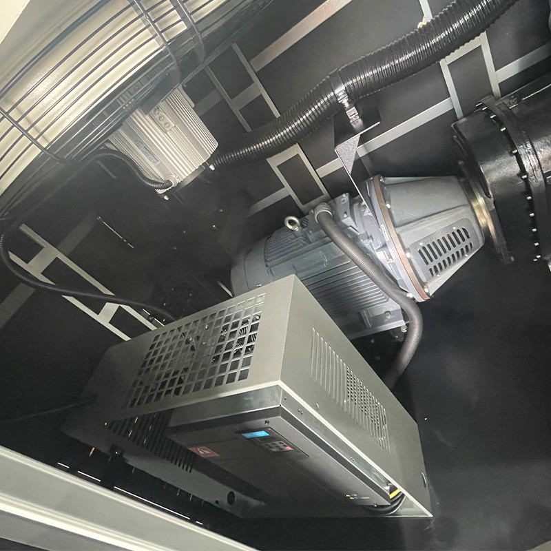 Sprężarka jest wyposażona w chłodzony olejem silnik synchroniczny z magnesami trwałymi, który przyczynia się do stabilnej kontroli poziomu hałasu. Magnesy trwałe z zabezpieczeniem przed wzrostem temperatury zapewniają utrzymanie rozszerzalności cieplnej w rozsądnym zakresie, unikając nadmiernego tarcia lub naprężeń mechanicznych, które mogłyby zwiększyć hałas. Układ chłodzenia utrzymuje stałą temperaturę silnika, zapobiegając nagłym zmianom w pracy, które mogłyby prowadzić do skoków hałasu. Ponieważ silnik nie wymaga prądu wzbudzenia, jego praca jest płynna i spójna, co poprawia stabilność akustyczną. Kontrolowana prędkość silnika minimalizuje również szumy tonalne, pomagając utrzymać przewidywalny poziom hałasu nawet podczas długotrwałej pracy.